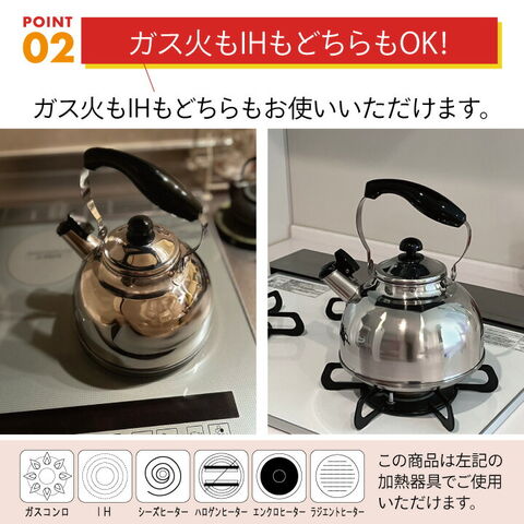 ガスコンロ コンロ 直火 ガス火 ih IH ih シーズヒーター ハロゲンヒーター エンクロヒーター ラジエントヒーター 熱源 家庭 色 沸騰 沸騰合図 笛 笛音 音が鳴る さびにくい 錆びにくい サビにくい 錆に強い サビに強い 丈夫 頑丈 長持ち 台所 使い勝手 お手入れ 簡単 衛生的 水周り 便利 用途 一人暮らし 二人暮らし 送料無料