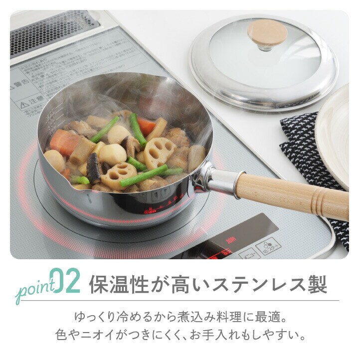18cm 18センチ 18 18センチ 直火 ガスコンロ IH ih ih 鍋 取っ手付き 木製 取っ手 木の取っ手 木の柄 柄付き ハンドル 片手鍋 万能鍋 フタ ガラスぶた 蓋付き ふた付き フタ付き 中が見える ガラスぶた 硝子蓋 ガラスふた 強化ガラス ステンレス製 日本 made in japan 一人暮らし 二人暮らし シンプル みそ汁 スープ ミルク チャイ 離乳食 野菜 茹でる 煮る 温める 離乳食作り ベビーフード 赤ちゃん ベビー レトルト ラーメン 袋麺 スイーツ 下ごしらえ ハンドル 天然木 調理器具 キッチンツール キッチン用品 料理 調理 キッチン 台所 食事 機能性 耐久性 匂い におい ニオイ つきにくい 汚れ よごれ さびにくい 丈夫 長持ち 保温性 毎日 活躍 料理好き クッキング 趣味 便利 便利グッズ 使いやすい お手入れ 簡単 丈夫 頑丈 安心 安全 シンプル スタイリッシュ デイリー 便利 新生活 引っ越し ライフスタイル 引っ越し祝い 結婚祝い 内祝い 贈り物 ギフト プレゼント ラッピング ラッピング無料 包装 包装無料 送料無料