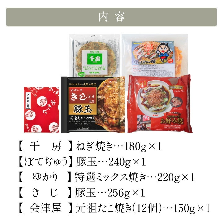お好み焼き たこ焼きセット 5食 6603-50 千房 ぼてぢゅう ゆかり きじ 会津屋 大阪 名店 食べ比べ 5店舗 お取り寄せ グルメ おいしい 本格 大阪グルメ 大阪の味 関西 冷凍 食品 同梱不可