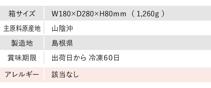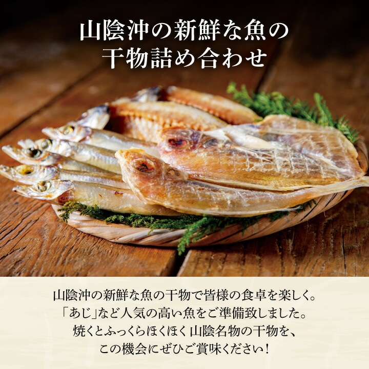 【期間限定販売】 山陰沖の新鮮な魚の干物で、食卓を楽しく! ●水分をある程度残した状態で干すため、生に近い食感や風味を 楽しむことができるのが一夜干しの特徴。 ●水分が適度に残り、魚本来の旨味や風味をより強く感じられ、 ふっくらほくほく食感の絶品です。 ●人気高い5種のお魚を盛りだくさんで自宅にお届けします。 ●日持ちするので、ギフトシーズンにも大変喜ばれます。 |