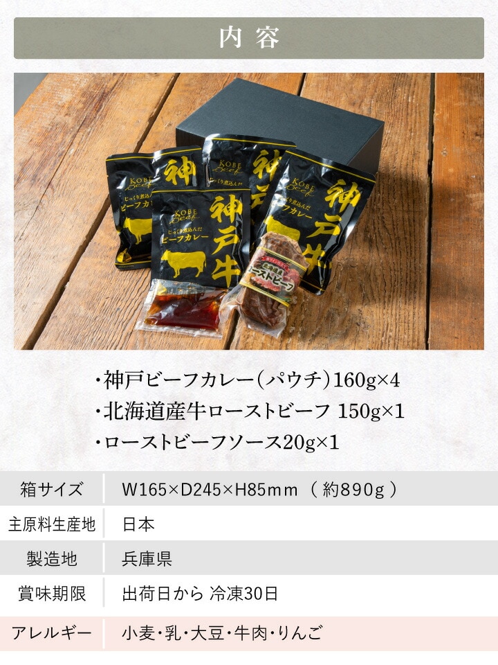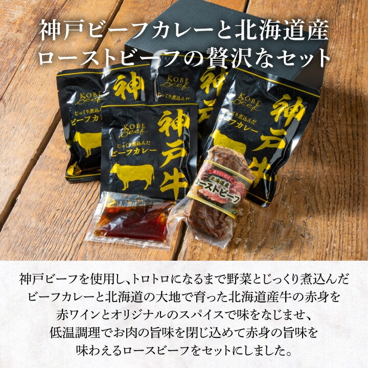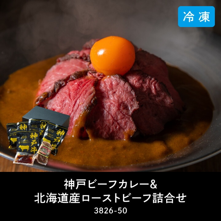 【3月10日までの期間限定販売】神戸 ビーフカレー & 北海道産 ローストビーフ 詰合せ 3826-50 カレー レトルト パウチ 神戸ビーフ 但馬牛 4食 高級 和牛 ローストビーフ ソース 北海道産 国産 牛肉 ブロック 冷凍 セット 食品 ギフト 同梱不可