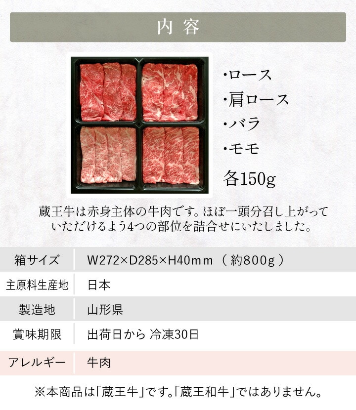 【3月10日までの期間限定販売】蔵王牛 すき焼き ・ しゃぶしゃぶ 一頭盛り 6528-100 すきやき ロース 肩 バラ モモ 各150g 600g 赤身 霜降り 黒毛 高級 ブランド牛 牛 国産 贅沢 盛り合わせ セット 食品 ギフト 同梱不可