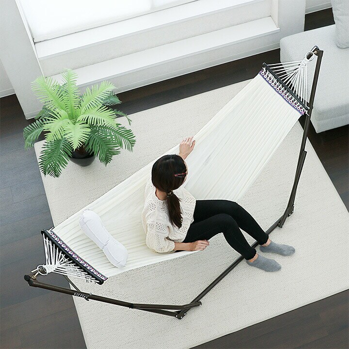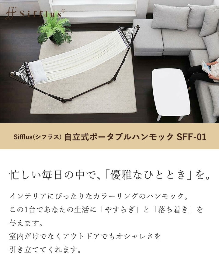 阪和 SFF-01-WH 自立式ポータブルハンモック ホワイトSifflus シフラス インテリア やすらぎ 落ち着き アウトドア おしゃれ 簡単 組立て コンパクト ナイロンメッシュ 洗濯 通気性 エア枕 耐荷重 300kg 送料無料 同梱不可