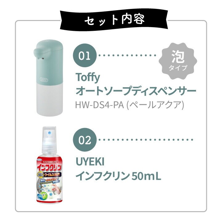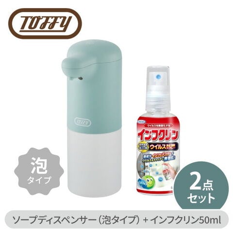 【くらし屋オリジナル】Toffy オートソープディスペンサー HW-DS4-PA + インフクリン50mlセット 手洗い ハンドソープ 泡タイプ 手指 抗ウイルス インフルエンザ対策 感染予防 風邪予防 除菌 抗菌