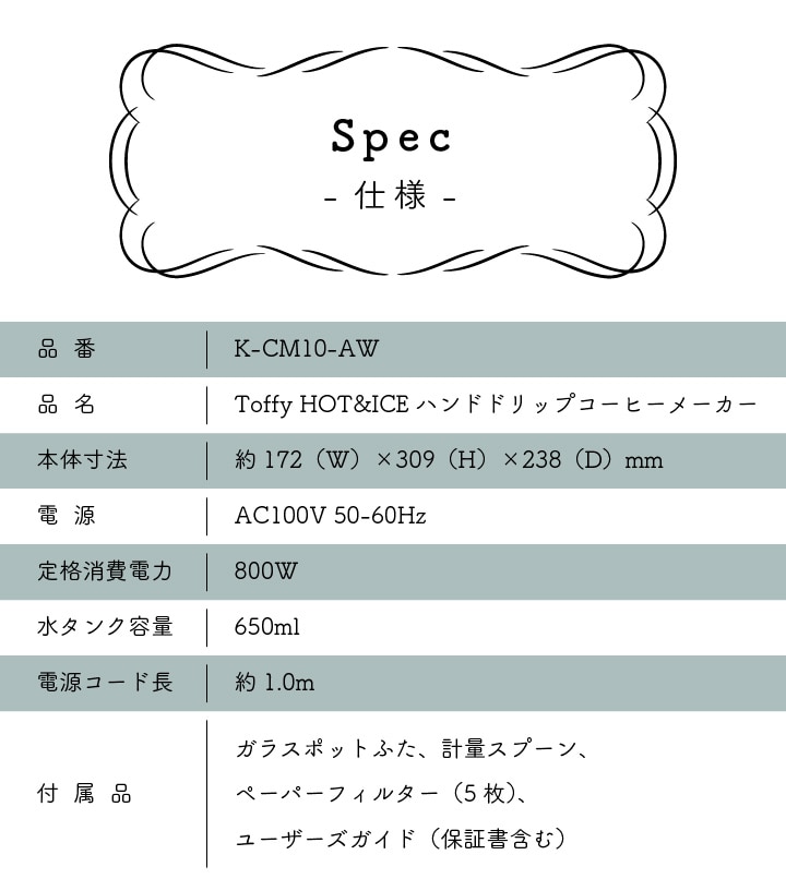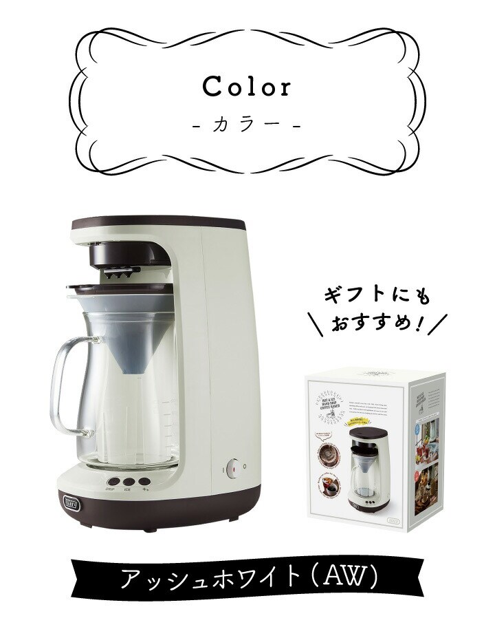 Toffy HOT&ICEハンドドリップ コーヒーメーカー K-CM10-AW アッシュホワイトおしゃれ 4杯 5杯 アイスコーヒー ホットコーヒー