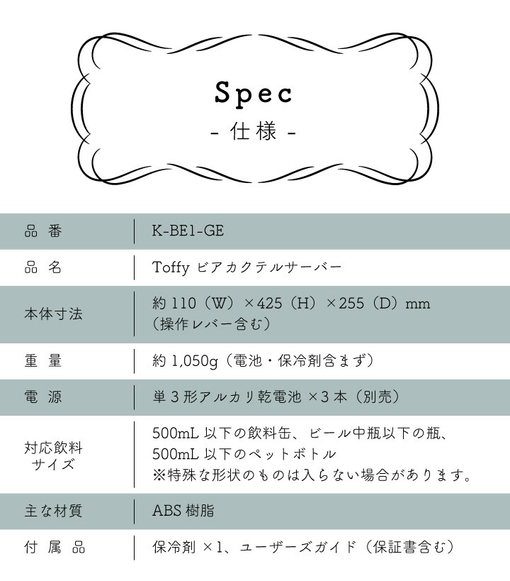 ビールサーバー ビアサーバー スタンドビールサーバー 家庭用ビールサーバー ビール beer カクテル リキュール ジュース 缶ビール 瓶ビール 中瓶 泡 クリーミー なめらか 滑らか 舌触り 濃厚 濃い とろける 超音波振動 のど越し のどごし 旨い 美味い おいしい 美味しい 家庭用 家 自宅 宅飲み おうち飲み おうち居酒屋 飲み会 飲み 呑み 宴会 パーティー 卓上 食卓 テーブル キッチン 屋外 お花見 キャンプ アウトドア バーベキュー BBQ ハーフ&ハーフ ハーフアンドハーフ レッドアイ シャンディガフ ビターオレンジ ビアスプリッツァー コンパクト スリム コードレス 持ち運び 350ml 350ミリリットル 350 500ml 500ミリリットル 500 1L 1リットル 1 缶 瓶 ペットボトル 2本 2本 保冷剤 冷たい 冷たさキープ 長持ち 簡単 切り替え ダイヤル シングル ブレンド バリエーション 抽出量 乾電池 母の日 父の日 敬老の日 両親 親 父 母 祖父 祖母 祖父母 プレゼント ギフト 贈り物 包装 包装無料 ラッピング ラッピング無料 送料無料 のし 熨斗 おしゃれ かっこいい Toffy トフィー グレージュ ベージュ 白 GREGE