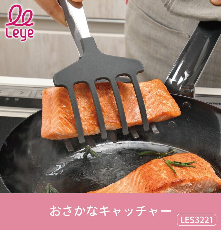 おさかなキャッチャー LES3221 オークス レイエ 日本製 焼魚 煮魚 煮付け グリル 返し ターナー トング 幅広 ワイド 盛り付け 挟む キッチンツール 簡単ロック 調理用品 便利グッズ 食洗機対応 AUX Leye