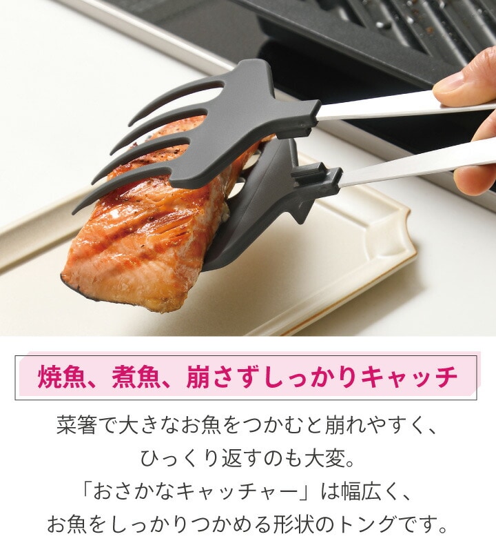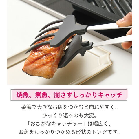 お魚キャッチャー 魚返し 魚がえし 返し トング ターナー 焼魚トング グリルトング フィッシュトング ワイド 幅広 裏返す ひっくり返す 両面焼 簡単 ラクラク 楽々 らくらく 盛り付け 魚用 焼き魚 焼魚 煮魚 秋刀魚 サンマ サバ 鯖 鮭 鰤 赤魚 ほっけ 鱈 鯛 塩焼き 味噌煮 煮付け ハンバーグ ロック機能 食洗機 食洗器 食洗器対応 食器洗い機 食器乾燥機 耐熱 ステンレス 一人暮らし 新社会人 単身赴任 主婦 主夫 大人 こども おかず 朝ご飯 朝食 昼ごはん 昼食 晩ご飯 夕食 和食 洋食 自炊 毎日 デイリー キッチン 台所 キッチングッズ 小物 キッチン小物 調理小道具 雑貨 キッチン雑貨 人気 お役立ち 便利 便利グッズ アイデア 国産 Made In Japan madeinjapan aux AUX leye Leye