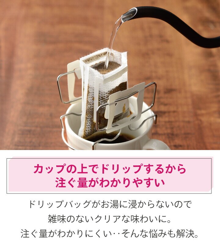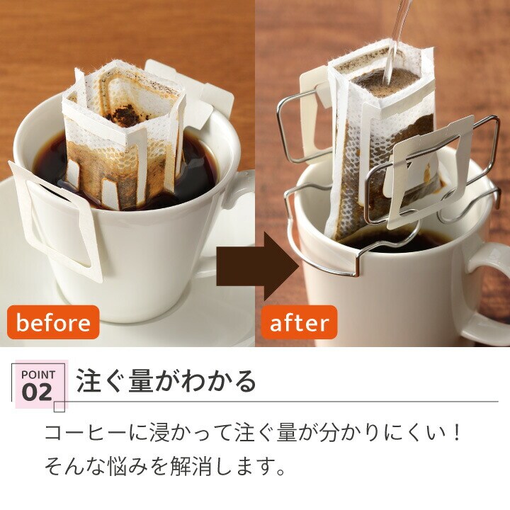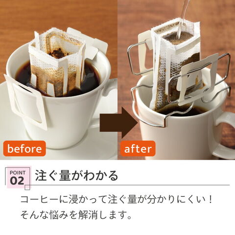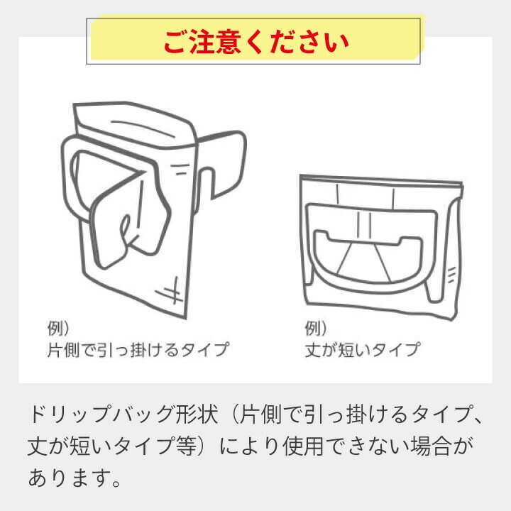 ※ドリップバッグの形状によっては、ご使用いただけない場合がございます。 例)片側で引っ掛けるタイプ・丈が短いタイプ など |