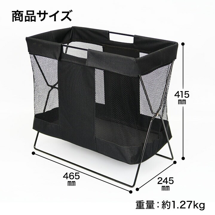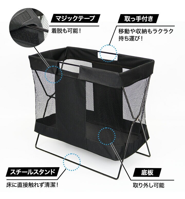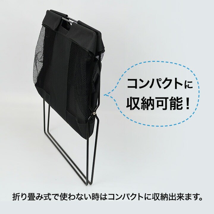 ●飲食店でよく見る手荷物入れ ●メッシュ生地で、中身が見やすく通気性もバツグンです。 ●脚付きで、床に直接触れず清潔に収納できます。 ●折り畳み式で使わない時はコンパクトに収納可能。 ●たっぷり入る大型サイズ |