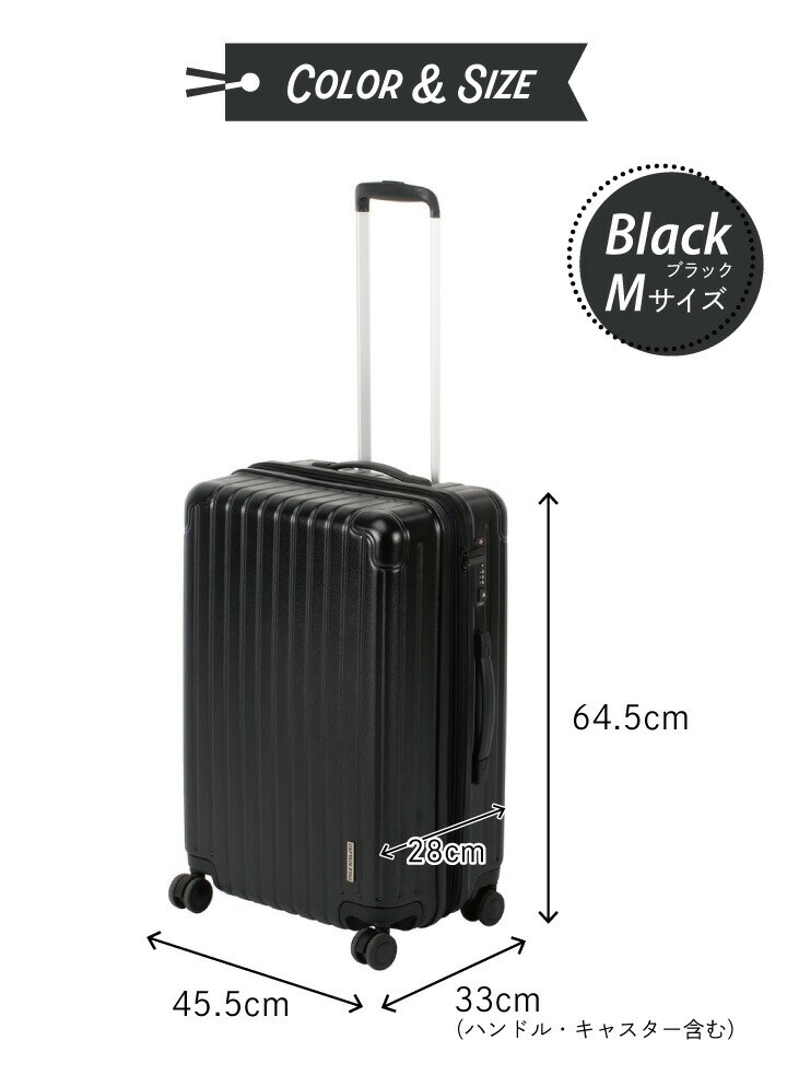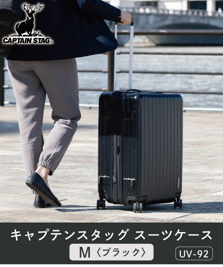 キャプテンスタッグ スーツケース TSAロックWFタイプ M UV-0092 ブラック 同梱不可キャリーケース キャリーバッグ 軽量 Mサイズ ロック付き 旅行 ビジネス 出張持ち手調節可能 ダブルファスナー 360度回転 フック付き仕切りボード 傷や汚れに強い バッグ 鞄