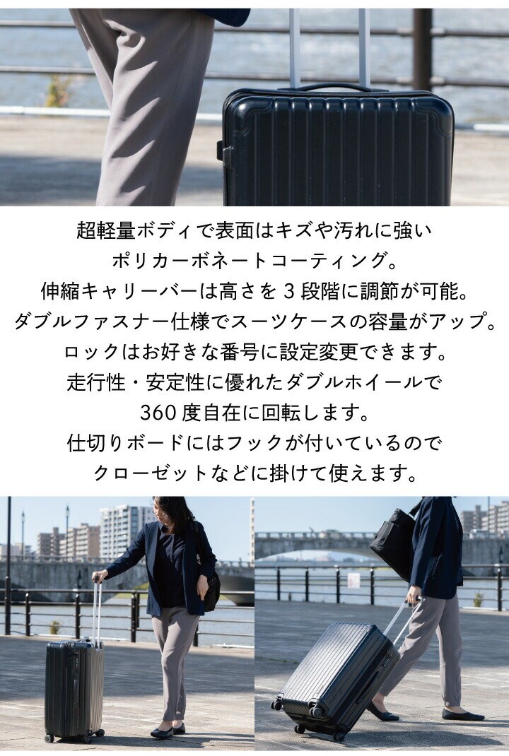 ●ダブルファスナー仕様でスーツケースの容量がアップ。