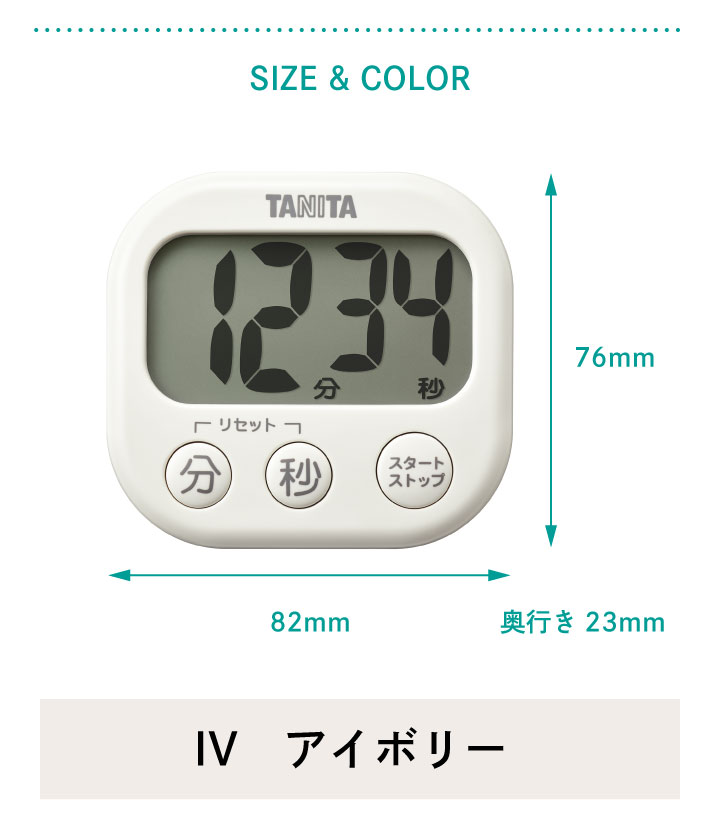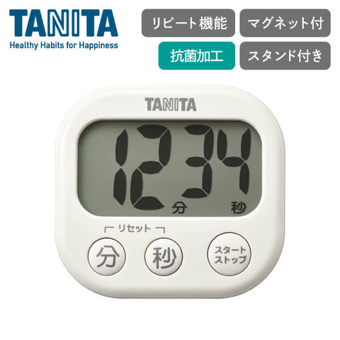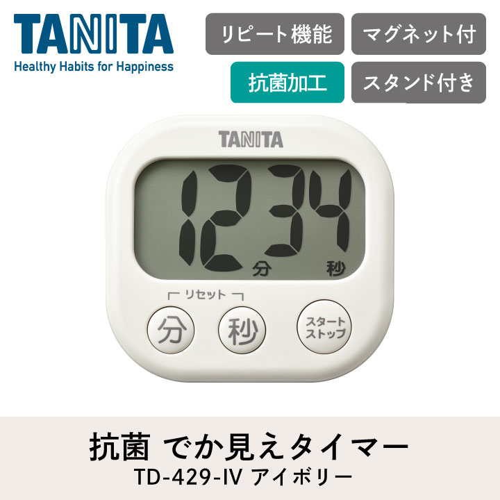 タニタ 抗菌 でか見えタイマー アイボリー TD-429-IVTANITA SIAA認証 抗菌加工 ストラップ マグネット 磁石 スタンド 見やすい 大きい文字 デジタル かわいい カラフル リピート機能 清潔 抗菌 ボタン シンプル 簡単操作