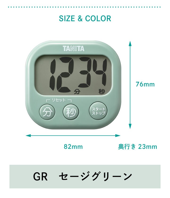 TD429 TANITA tanita 見える 大きい文字 でか文字 デジタル 数字 軽量 軽い おしゃれ お洒落 カワイイ かわいい シンプル スタイリッシュ モダン 置き型 マグネット 磁石 茹で時間 休憩時間 遊び時間 子供 勉強時間 ゲーム時間 家事 蒸らし時間 トレーニング 筋トレ リピートタイマー らくらく 操作 簡単設定 カラーバリエーション 豊富 カラバリ 緑 グリーン 防カビ 防ウイルス 抗菌仕様 キッチン 台所 タイマー カウントダウン
