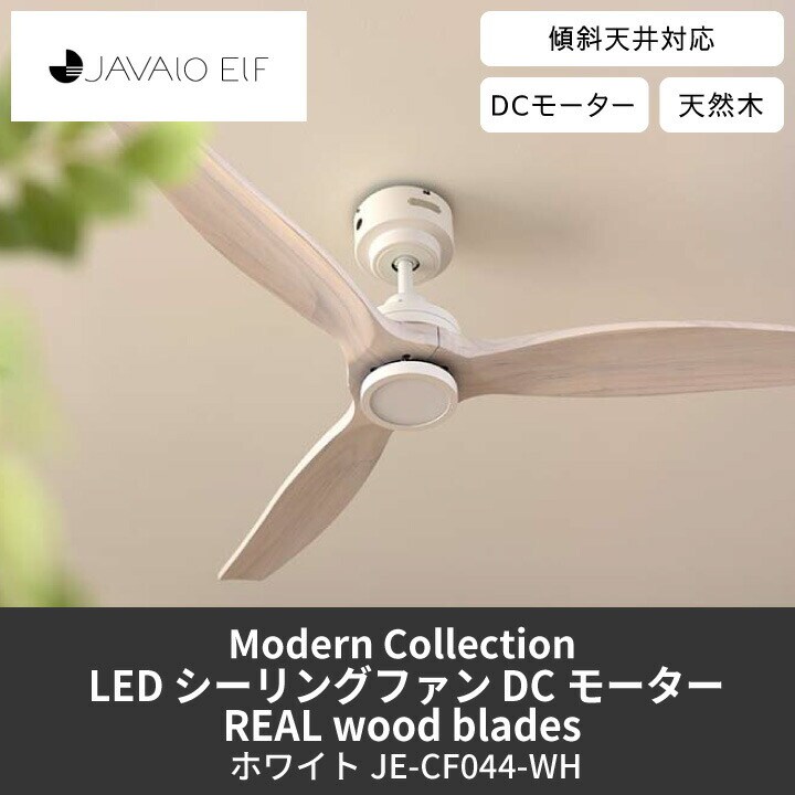 シーリングファン モダンコレクション DCモーター LED 1灯 リアルウッド ホワイト JE-CF044 WH ライフオンプロダクツ JAVALO ELF ジャヴァロエルフ リモコン付 同梱不可