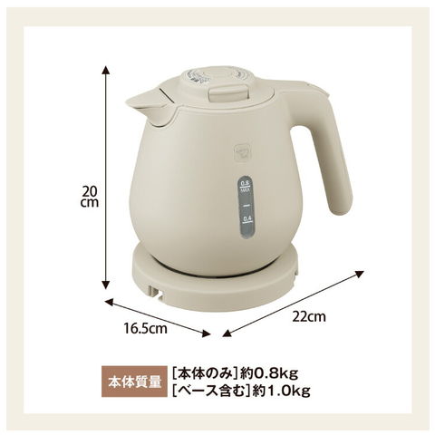 象印 電気ケトル CK-DH08 0.8L CA ベージュ ケトル ポット 電気 おしゃれ 安全 清潔 600W 自動電源オフ 空だき防止 ホテル 旅館 ギフト
