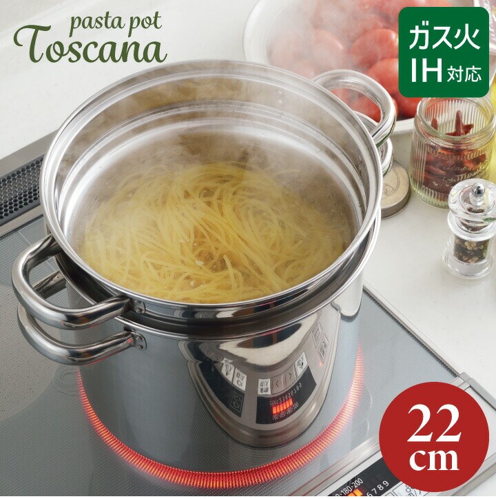 【期間限定 ふきんプレゼント中】ヨシカワ トスカーナ パスタポット 22cm (ガラス蓋付) SJ3120 【IH・ガス火対応】麺茹で 煮込み料理 寸胴鍋 深型鍋 湯切り 中子付き パスタ鍋 深鍋 煮込み鍋 両手鍋 中子 ふた フタ 蓋 Toscana ギフト