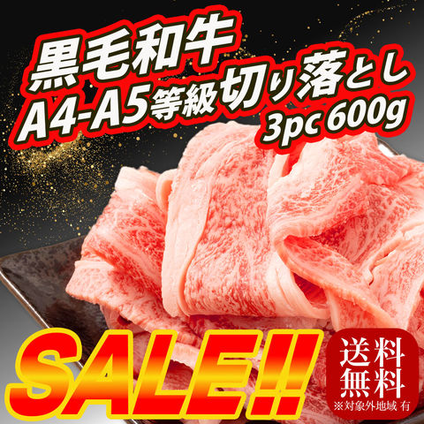 A5-A4等級 和牛 切り落とし 600g(200g×3)【限定価格! 5990円 → 5001円 】牛肉 和牛 すきやき すき焼き 黒毛和牛 国産牛 すき焼き用 しゃぶしゃぶ肉 霜降り 薄切り 赤身 訳あり 冷凍 小分け すき焼き用牛肉