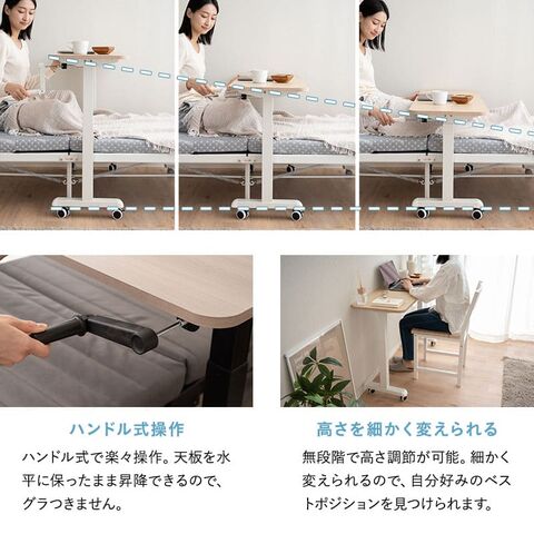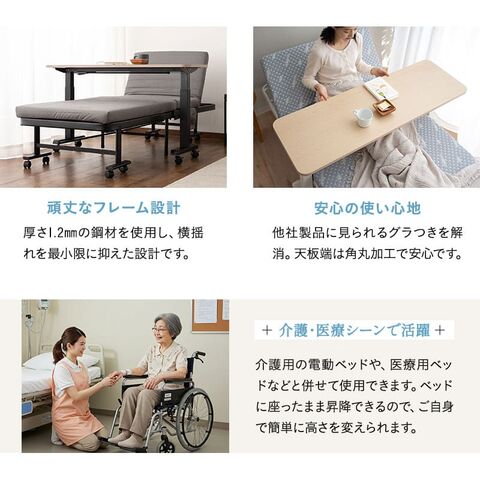 リフティングテーブル ベッドテーブル 幅120cm キャスター付き 昇降式 高さ調節 ベッド 介護 リフトテーブル 昇降式テーブル 補助テーブル 昇降式デスク テーブル デスク 机 食事 仕事 PC 在宅 デスクワーク 施設 ホーム 病院 医療 北欧 新生活 送料無料 エムール