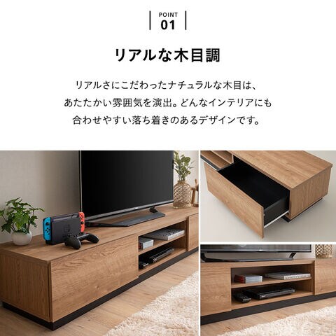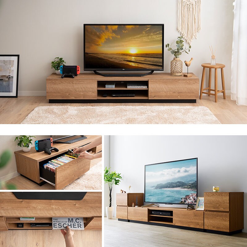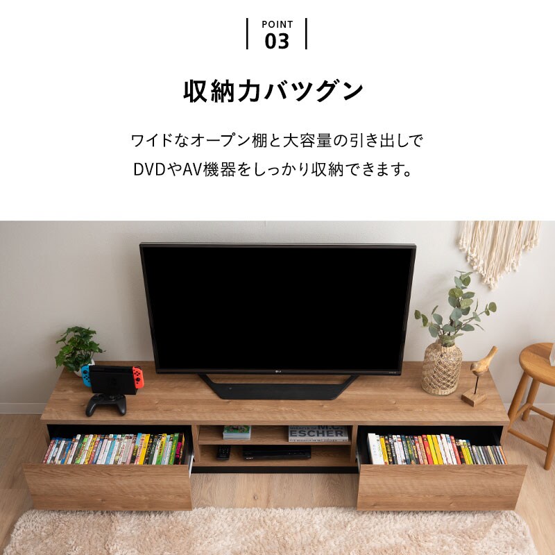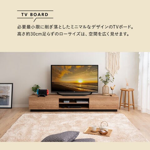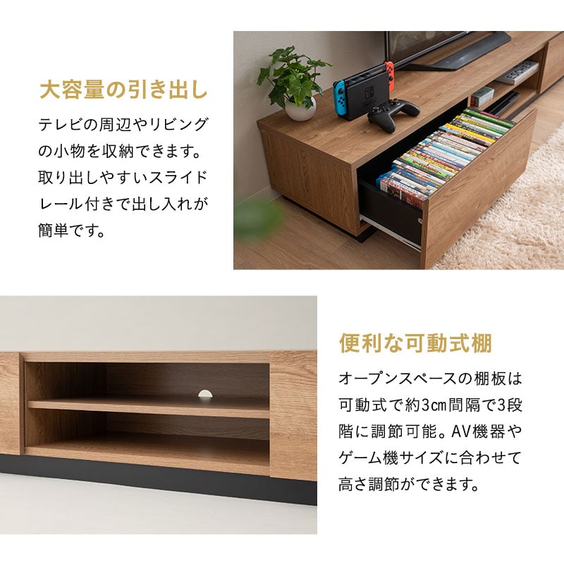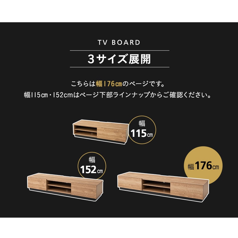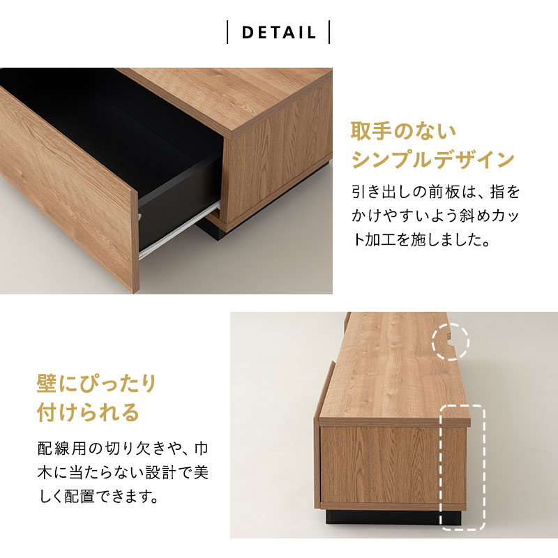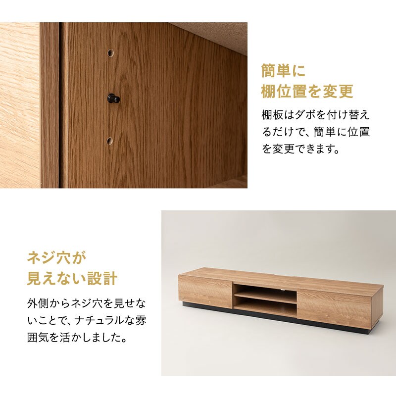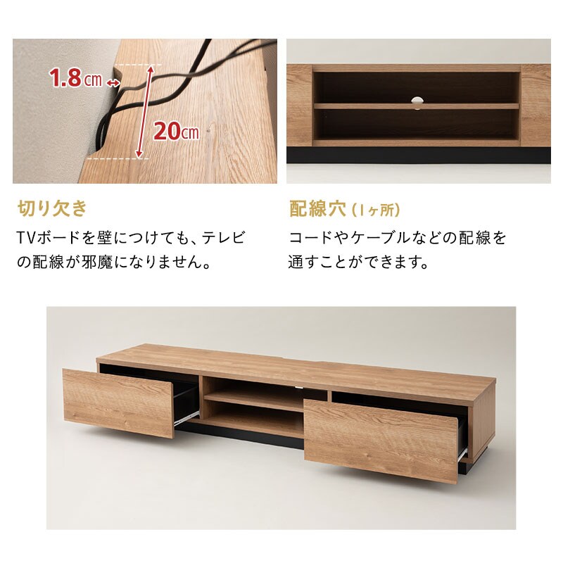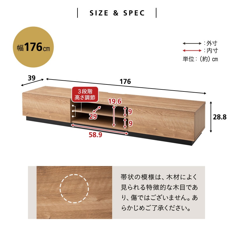 | サイズ | 全体:約幅176×奥行39×高さ28.8cm オープン収納部内寸(棚板中央時):約幅58.9×奥行29×高さ9cm 引き出し収納部内寸(左右共通):約幅49×奥行27.3×高さ10.6cm |