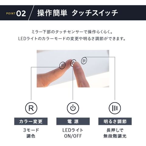 | 機能 | 明るさ無段階調整 カラー調整(昼光色/昼白色/電球色) タッチ操作 USBポート付き(Type-A/Type-C) スタンド・壁掛け2way仕様 引き出し左右入れ替え可能 |