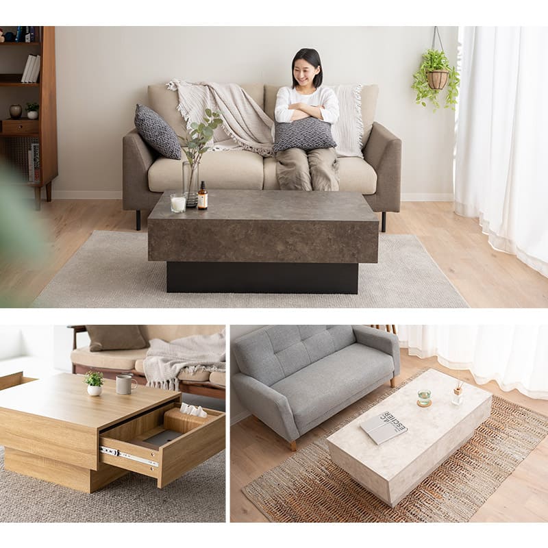 センターテーブル テーブル ローテーブル 幅105cm 幅80cm 長方形 正方形 引き出し 収納 大容量 リビングテーブル デスク 作業台 家具 角型 リビング コンパクト 石目調 セラミック調 木目調 食事 仕事 PC 在宅 リモート ワーク 北欧 おしゃれ 新生活 送料無料