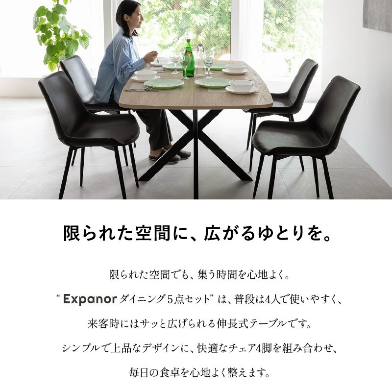 | 品名 | 【Expanor】 伸長式 ダイニング 5点セット (ダイニングテーブル+椅子4脚) |