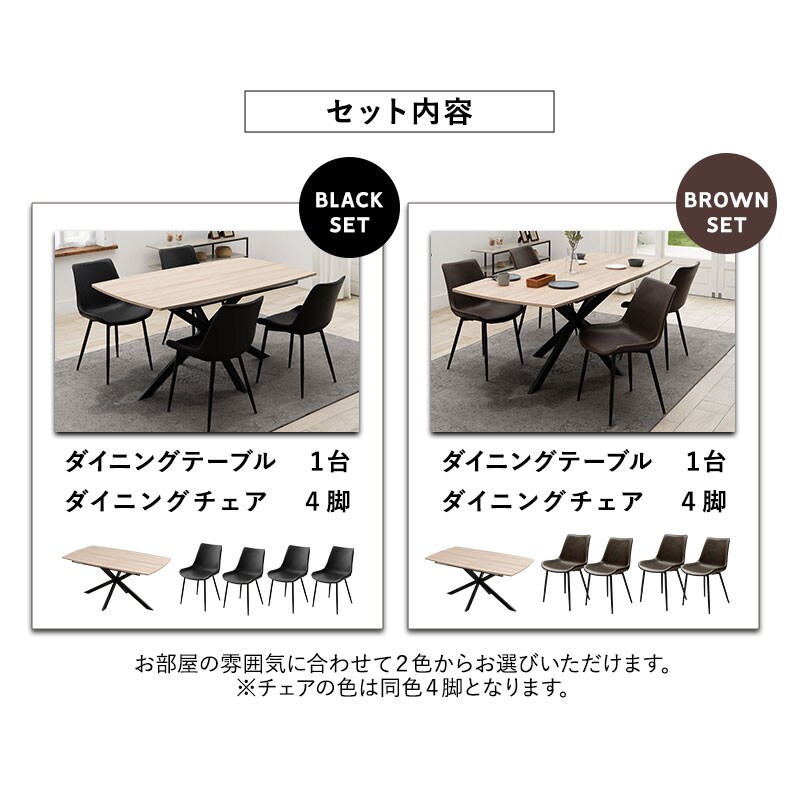 ダイニングテーブルセット 5点セット幅160-200cm 伸長式 4人掛け 長方形 角型 ダイニングセット 食卓 ダイニング テーブル チェア 4脚 4人用 木目調 レザー調 合成皮革 黒 椅子 机 リビング 北欧 おしゃれ living&dining エクスパノール 新生活 送料無料 エムール