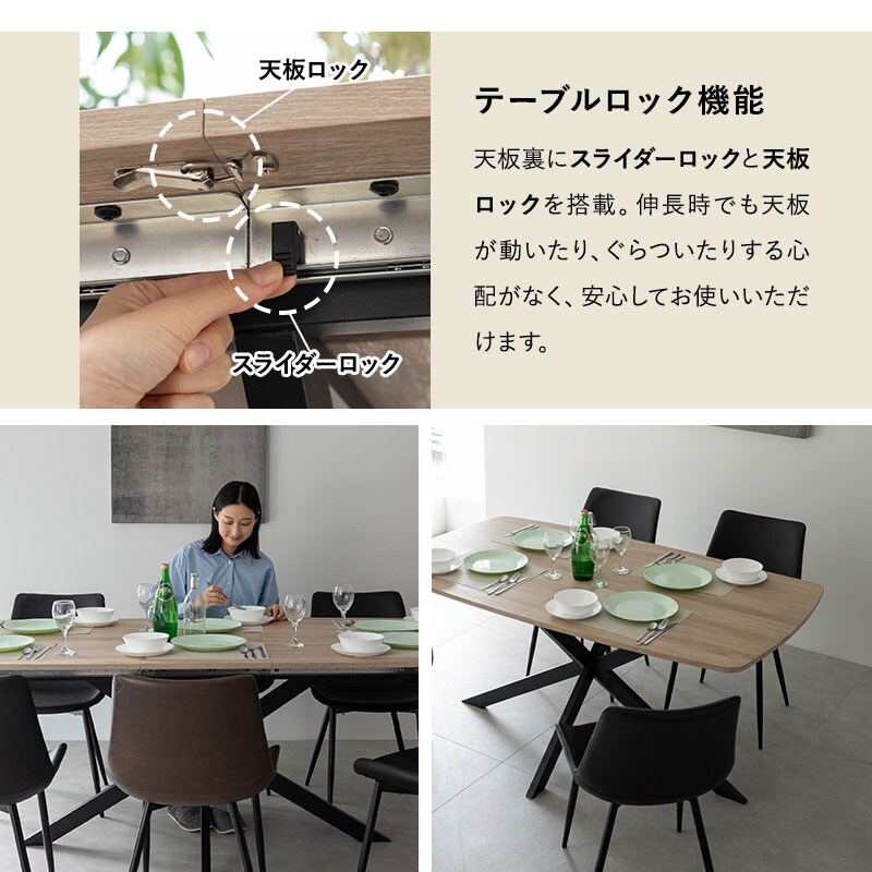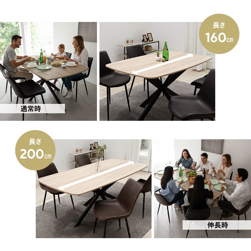 | ダイニングテーブル | ■サイズ 約幅160-200×奥行90×高さ72cm ■材質 天板:プリント化粧繊維板 脚:スチール(粉体塗装) ■カラー オーク ※ライン状の模様は、素材の特徴を再現したものです。傷ではございません。あらかじめご了承ください。 ■機能 伸長機能 ■重量 約35kg ■耐荷重 天板:約50kg |