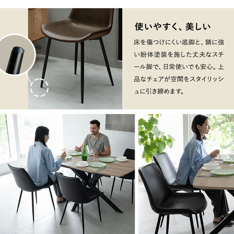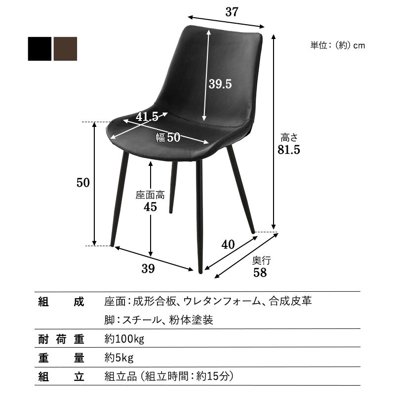 | レザー調チェア | ■サイズ 約幅50×奥行58×高さ81.5cm 座面高:約45cm ■材質 座面:成形合板、ウレタンフォーム 脚:スチール(粉体塗装) 張地:合成皮革 ■カラー ブラック/ブラウン ■重量 約5kg ■耐荷重 約100kg |