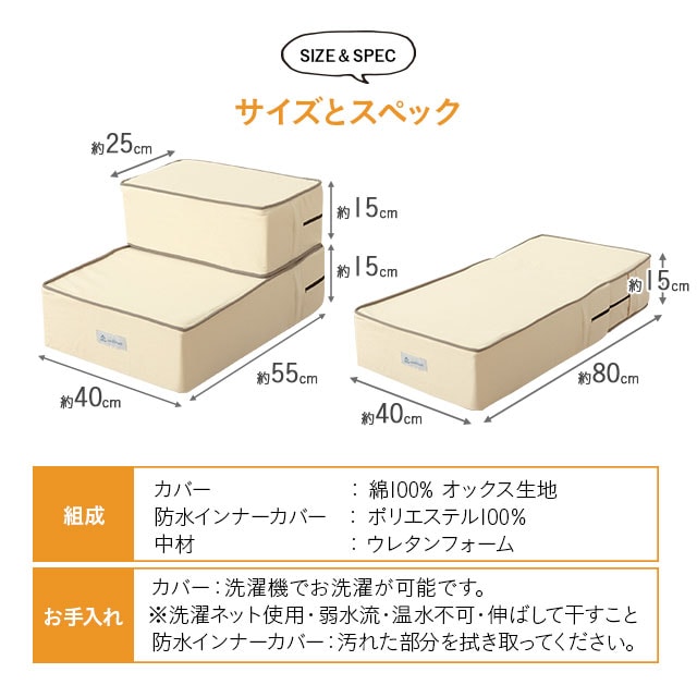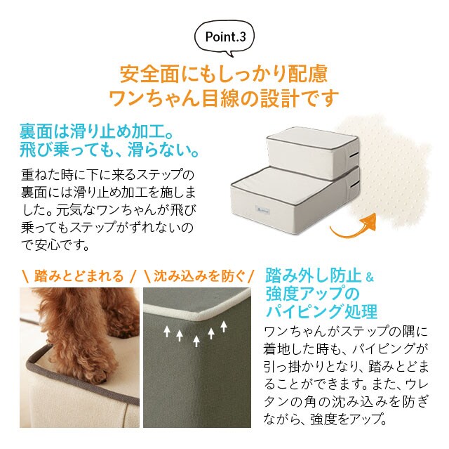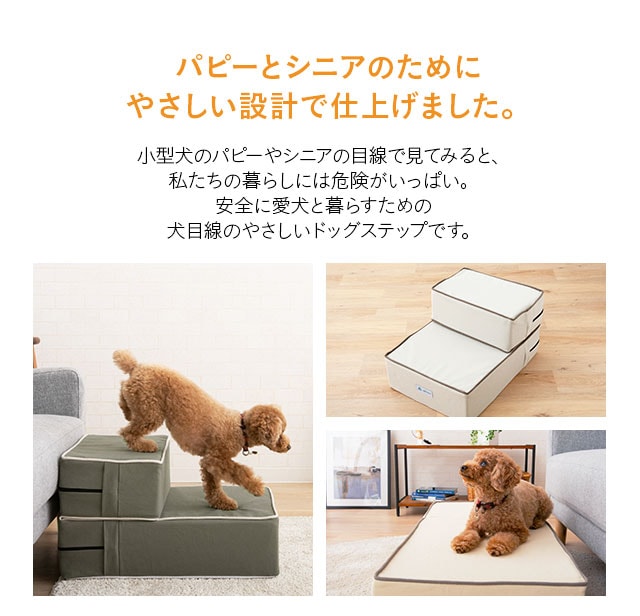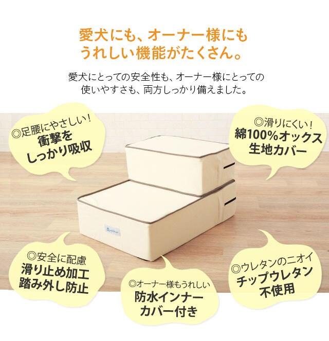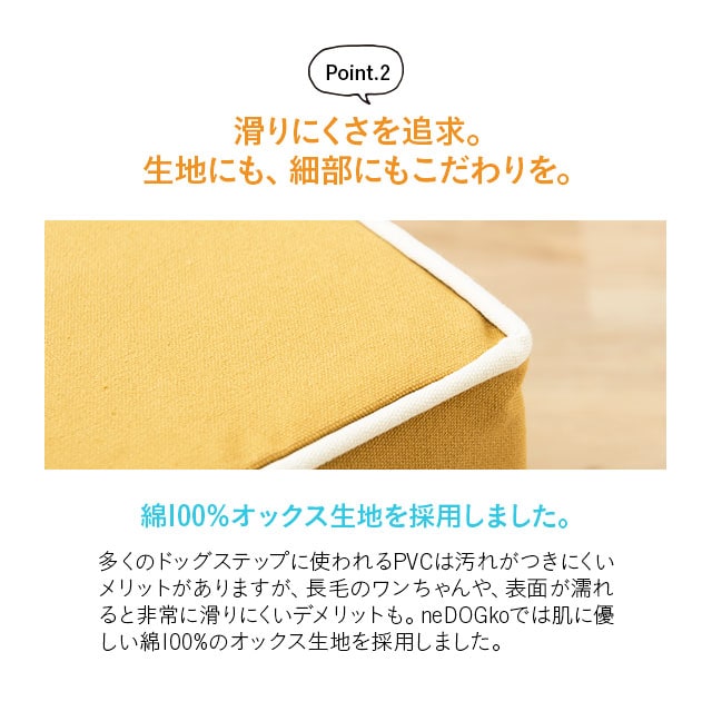 ドッグステップ ステップ 犬用ステップ スロープ 犬 犬用 ペット用 階段 ペットステップ ペットスロープ 洗濯 クッション ウレタン 綿100% 踏み台 小型犬 室内犬 段差解消 ヘルニア 脱臼 ケガ防止 グレー アイボリー 高齢犬 介護用品 ペット用品 ねどっこ