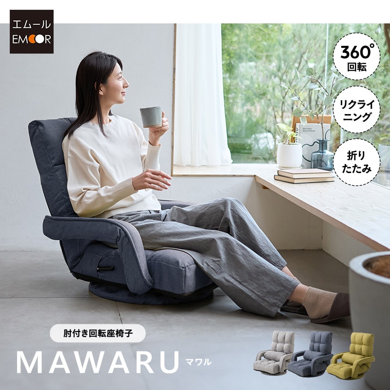 座椅子 回転座椅子 回転 椅子 チェア 肘付き いす 敬老の日 ギフト プレゼント 回転式 おしゃれ 肘掛け リクライニング ハイバック コンパクト パーソナルチェア フロアチェア 腰痛 和室 リラックスチェア 1人掛け【送料無料】 母の日 エムール