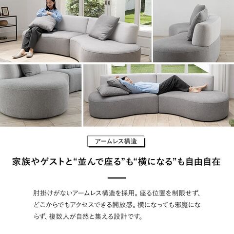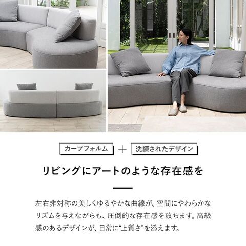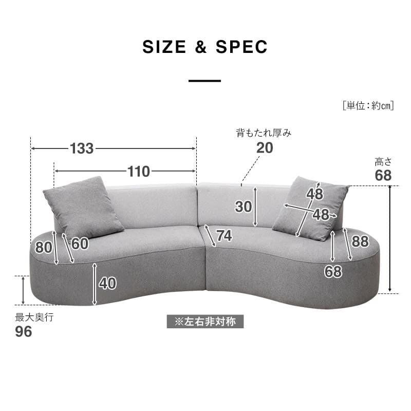 | サイズ | 全体:約幅266×最大奥行96×高さ68cm 座面:約幅266×奥行60-88×高さ40cm 背もたれ:約幅220×長さ30cm ※左右非対称 |