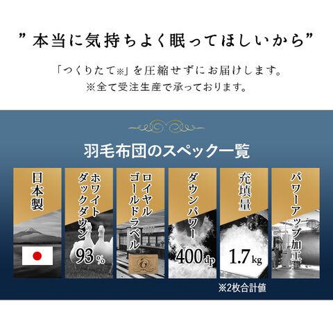 | 品名 | 日本製 ロイヤルゴールドラベル 2枚合わせ羽毛布団 |
