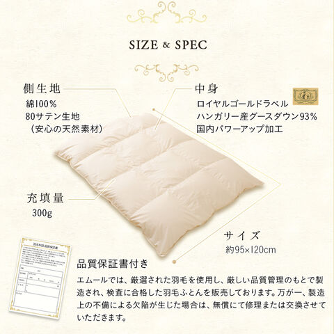 ベビー 羽毛布団 掛け布団 【ロイヤルゴールドラベル】 羽毛掛けふとん ベビーサイズ 95×120cm グースダウン93% 日本製 ベビー布団 羽毛 ベビーふとん 赤ちゃん ギフト 出産祝い エムール
