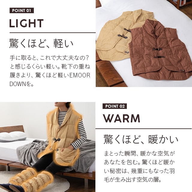 ポンチョ ベスト 肩当て ガウンケット 洗える 洗濯機可 ダウン 羽毛 部屋着 ルームウェア 丸洗い 安眠 安眠グッズ 冷え対策 防寒具 メンズ レディース おしゃれ 北欧 コンパクト 敬老の日 ギフト 高齢者 贈り物 プレゼント エムール エムール