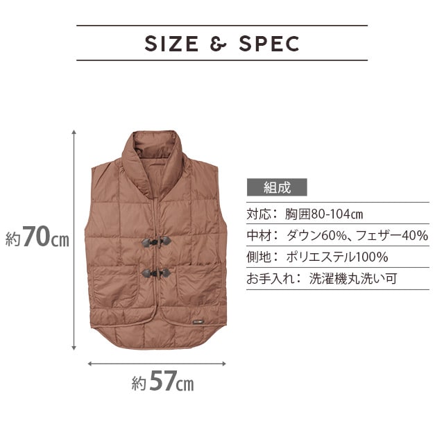 | 素材 | 中身:ダウン60%・フェザー40% 側地:ポリエステル100% |
