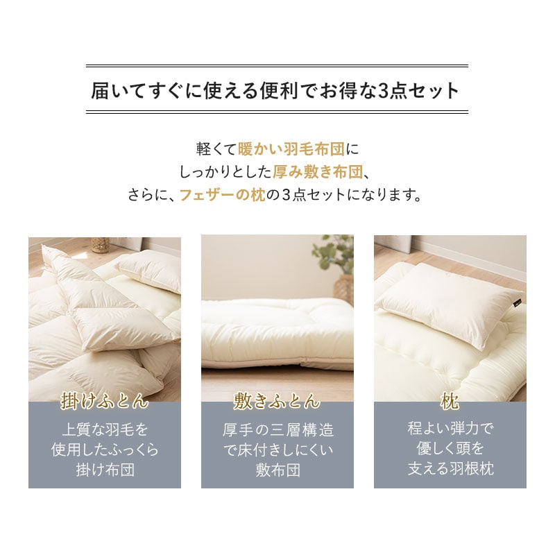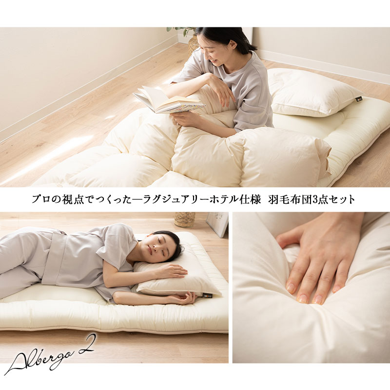 | 品名 | 日本製 ラグジュアリーホテル仕様 羽毛布団3点セット 「アルベルコ2」 |
