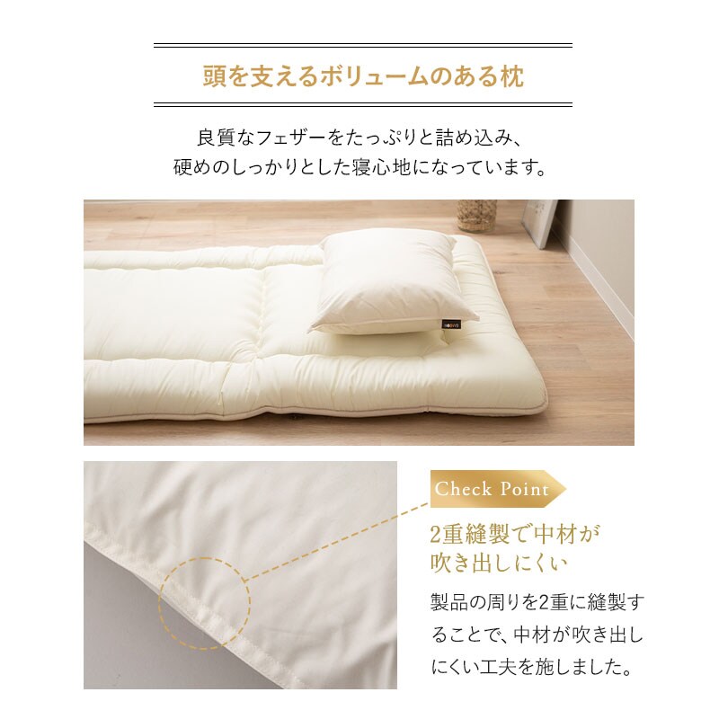 | 枕 | サイズ:約幅63×奥行43cm 中材:フェザー(羽根)100% 生地:綿100% |