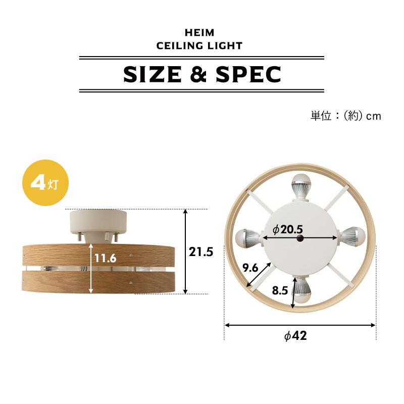 | 品名 | 【HEIM】 LED電球付 シーリングライト 4灯 / 10畳対応 |
