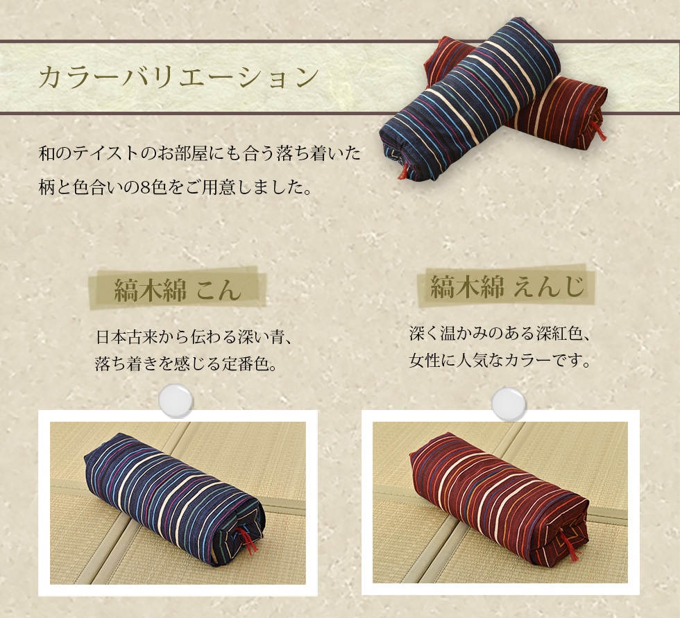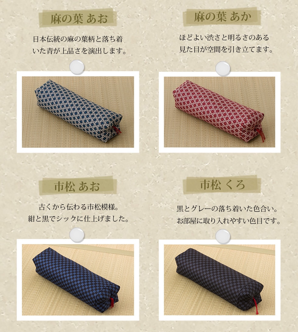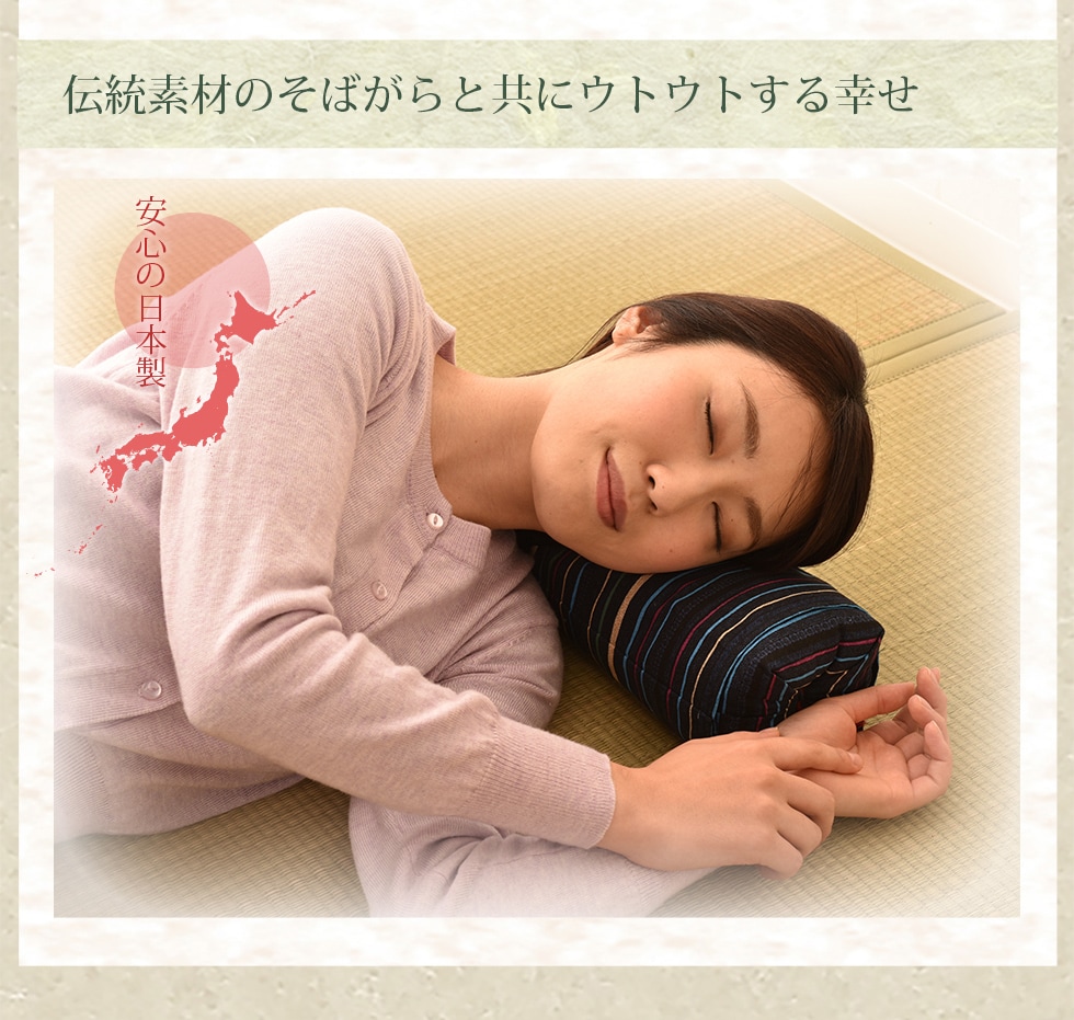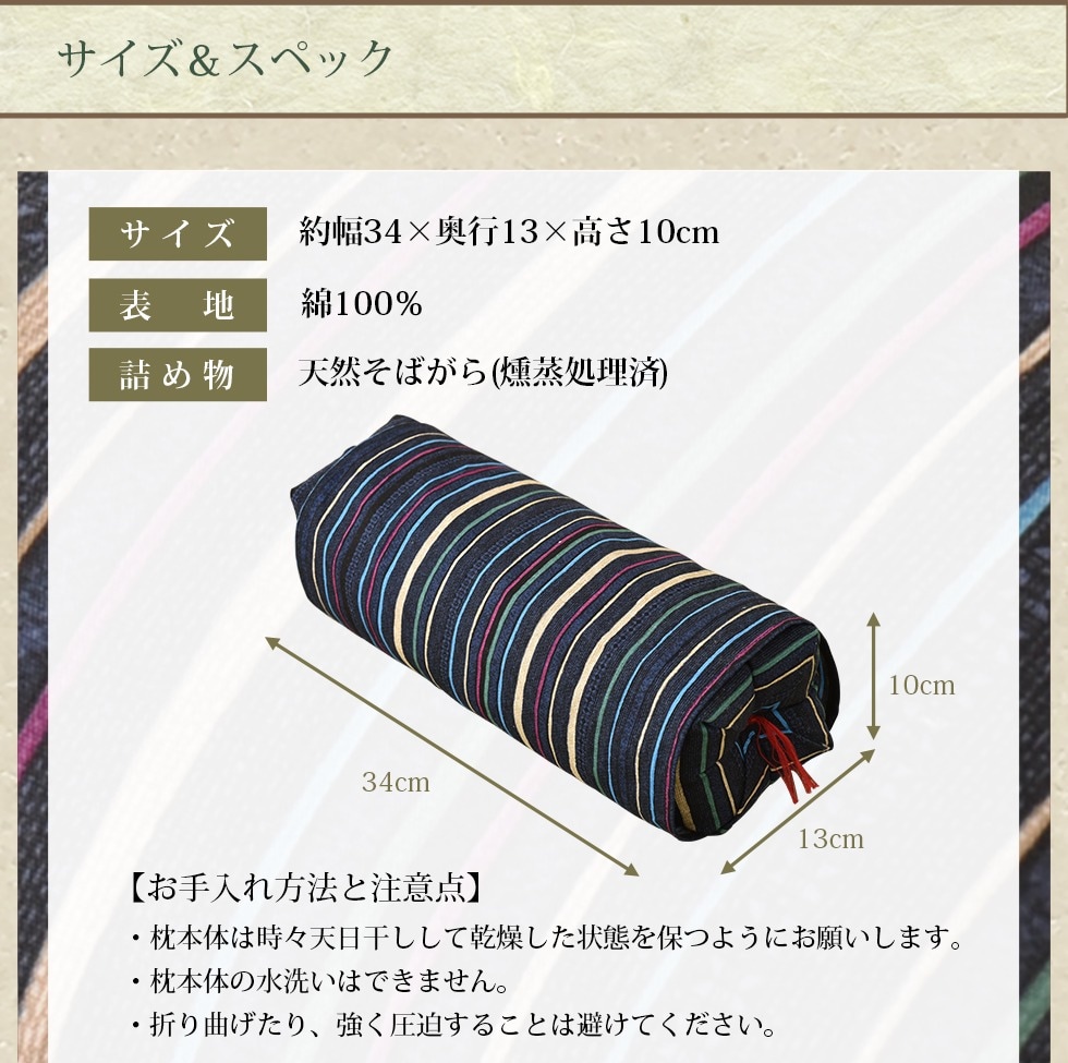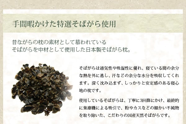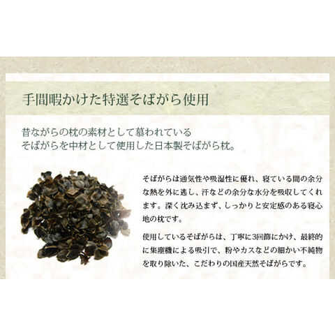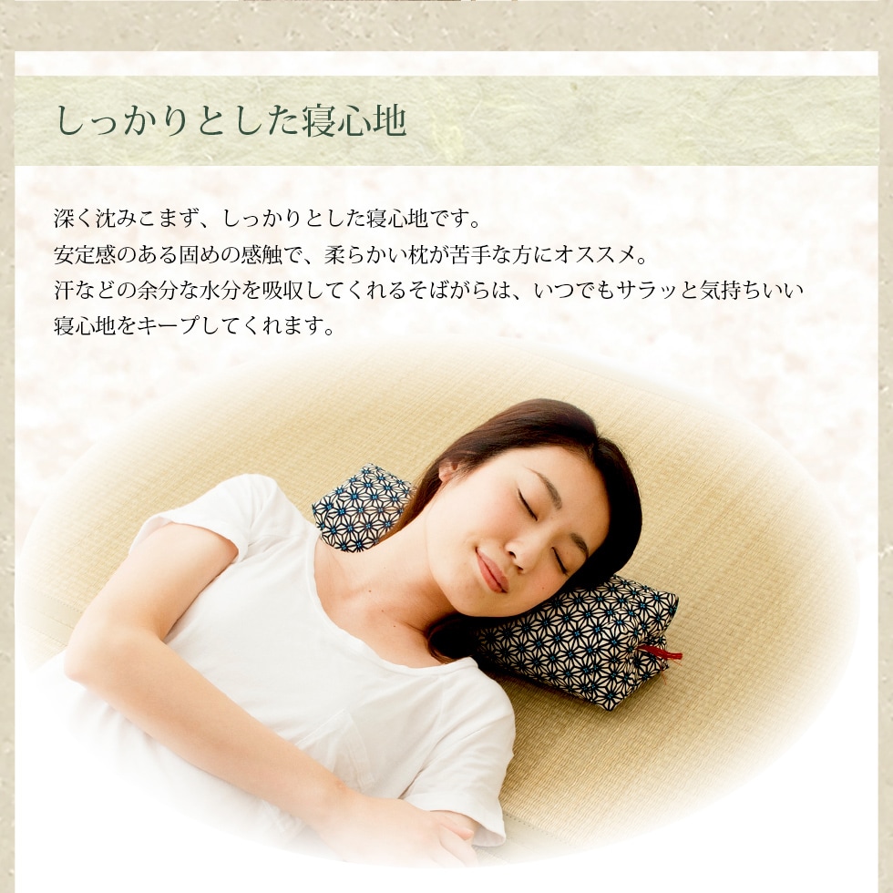 | 素材 | 表地:綿100% 詰め物:天然そばがら(燻蒸処理済) |
