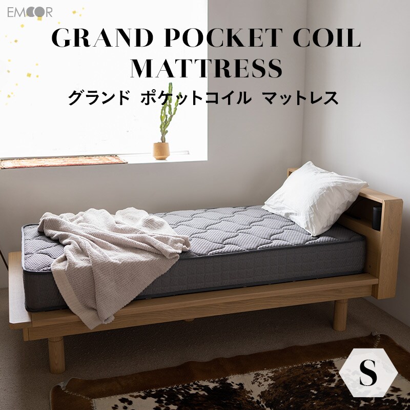 ポケットコイル マットレス シングル 薄型 22cm 体圧分散 高反発 耐久性 沈みにくい 立ち座りしやすい 日本人好み 弾力 フィット 寝心地 寝返り 腰痛 肩こり ベッド 布団 高機能 高品質 オールシーズン 女性 男性 グランド 北欧 新生活 ギフト 送料無料 エムール