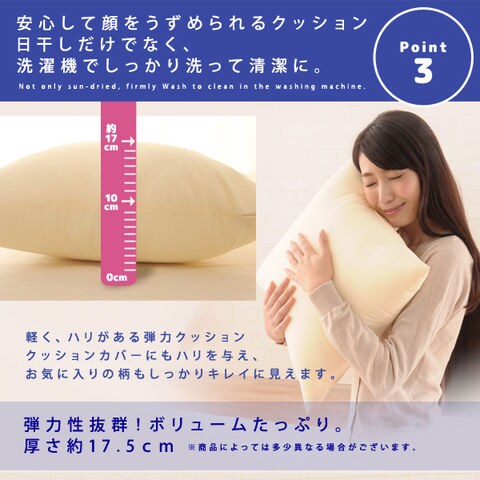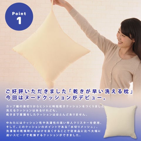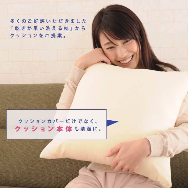 乾きが早い洗えるクッション 約45×45cm ウォッシャブル 丸洗い 日本製 水切りメッシュ エムール