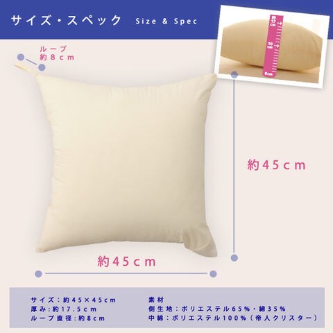 | 素材 | 側地:ポリエステル65%・綿35% 中身:ポリエステル100%(帝人クリスター) |