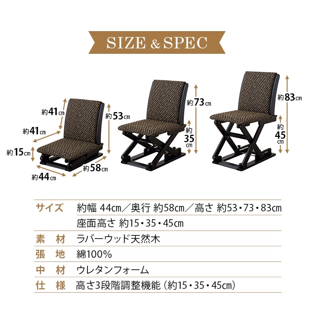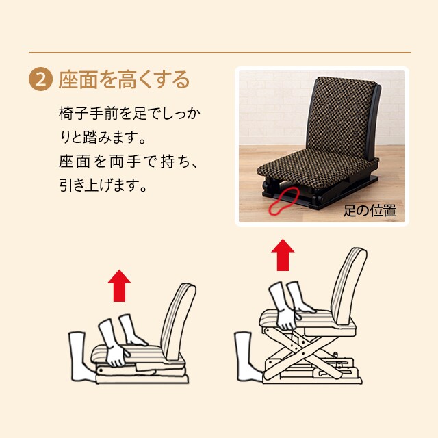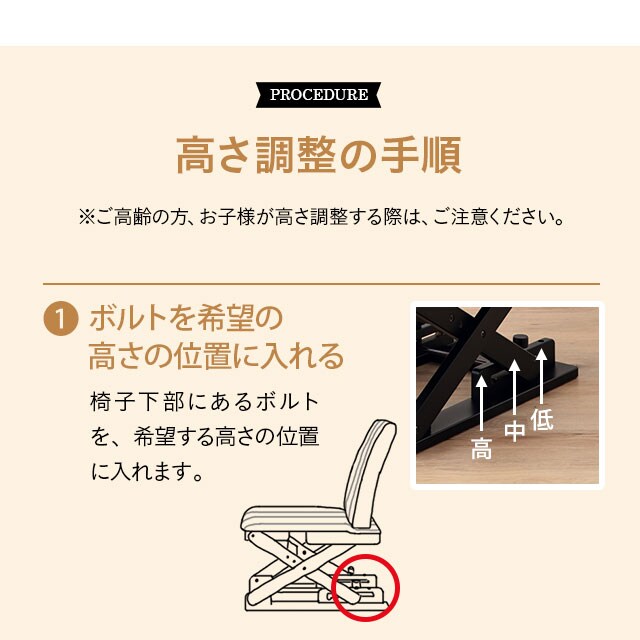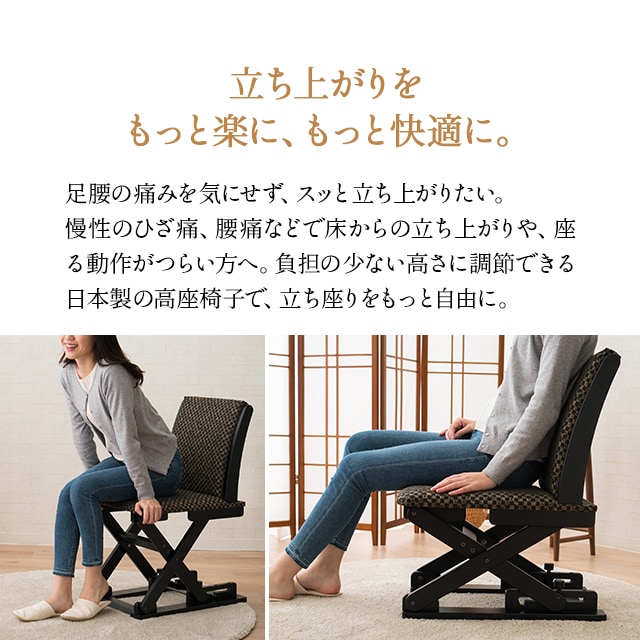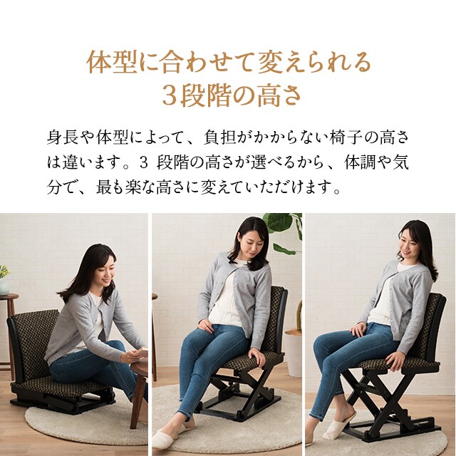 高さが変わる座椅子 3段階 リクライニング チェア 高座いす シニア リラックスチェア 角度 座面高 かわいい プレゼント 敬老の日 ギフト 贈り物 母の日 父の日 椅子 高齢者 介護 立ち座り 座椅子 肘掛け 【送料無料】 エムール