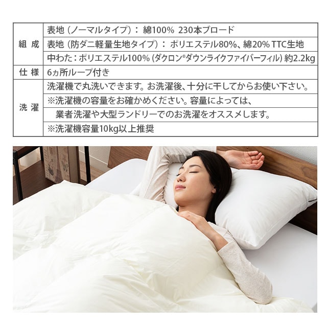 商品名ダクロン(R)Down like Fiberfill/掛け布団