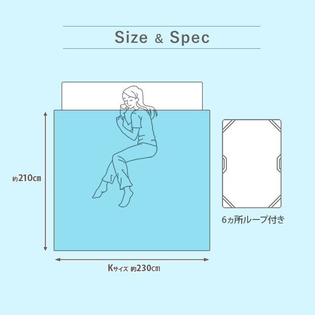 | サイズ | キングサイズ:約230×210cm、6ヶ所ループ付き |