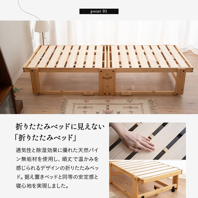 折りたたみベッド すのこベッド 幅65cm コンパクトショート 完成品 横揺れ防止 安全ロック付き アシスト機能 キャスター 木製 すのこ スノコ ベッド フレーム 小さい サイズ ごろ寝 通気性 除湿 湿気 カビ ニオイ 蒸れ 布団 やまね 和 空間美 新生活 送料無料 エムールライフ