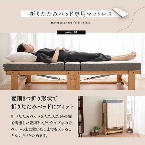 折りたたみベッド マットレス 2点セット 幅65cm コンパクトショート 完成品 横揺れ防止 安全ロック付き アシスト機能付き キャスター付き 3つ折り 三つ折り 折り畳み すのこ スノコ ベッド フレーム 高反発 ウレタン ごろ寝 子供用 来客用 やまね 和 送料無料 エムール