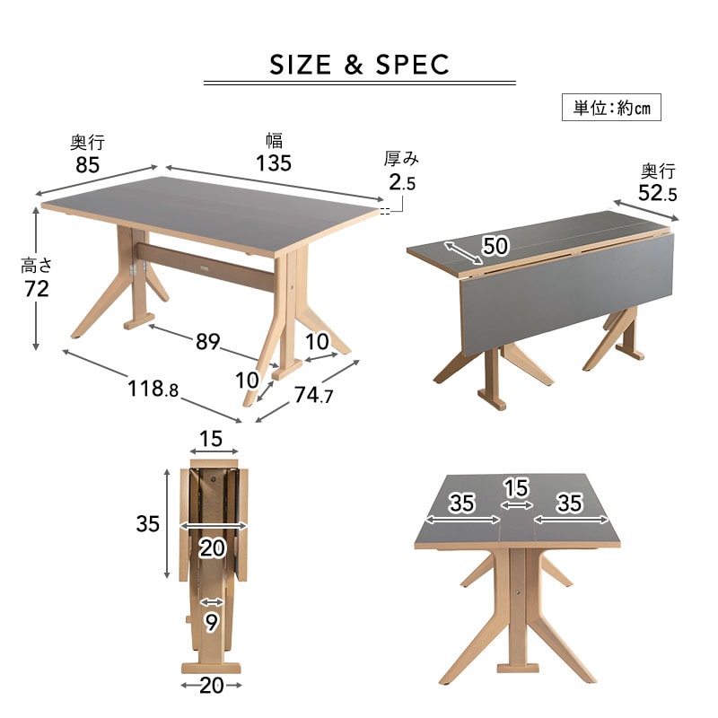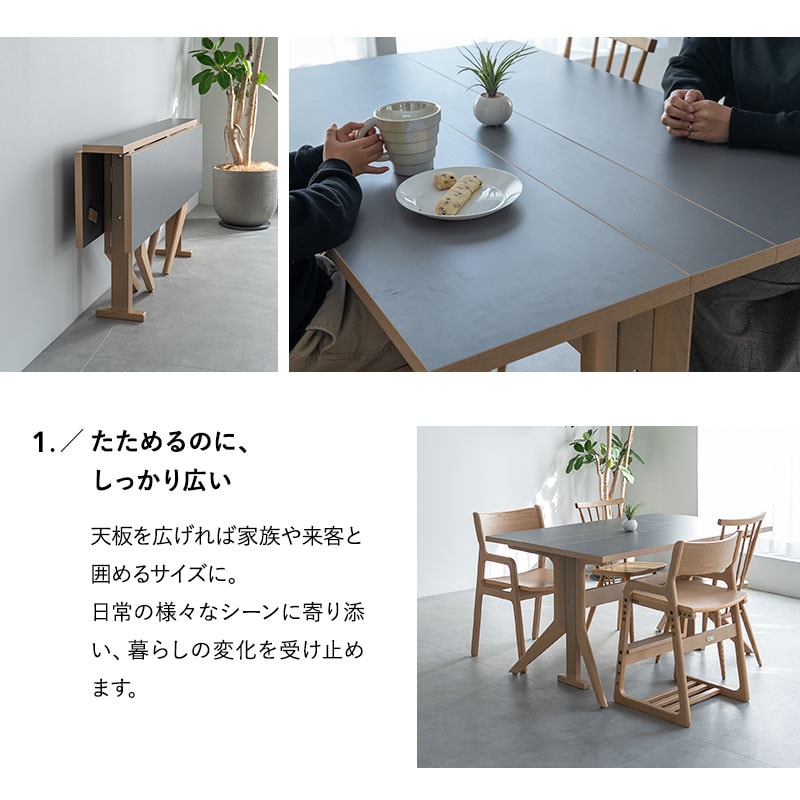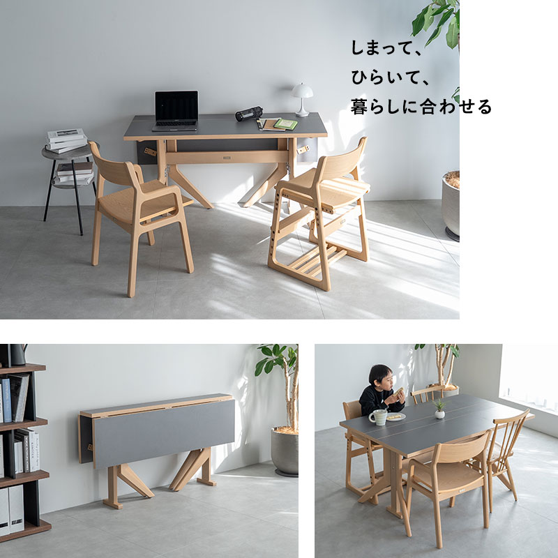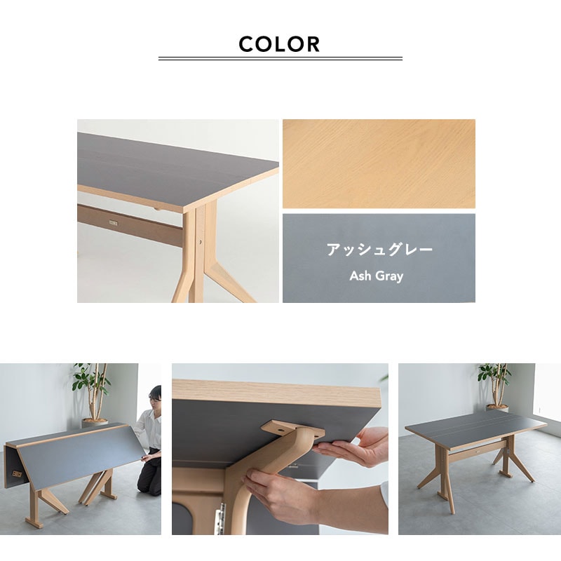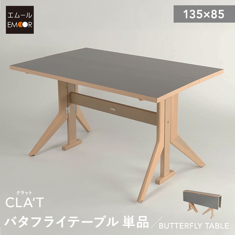 ダイニングテーブル 幅135cm 折りたたみ バタフライ 角型 2人掛け 単品 テーブル 食卓 デスク 机 リビング ダイニング 木製 天然木 2人用 食事 仕事 ワーク 作業 PC 勉強 学習 宿題 コンパクト 在宅 リモート 家具 クラット living&dining 北欧 送料無料 エムール